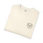 A small longhorn skull emblem on the chest. No big graphics, no loud statements. Just a quiet nod to the lifestyle for people who don't need to announce it. This garment-dyed Comfort Colors 1717 has that sun-faded softness from the first wear. Heavyweight cotton that ages like good leather. Relaxed fit that works under a flannel, over a campfire, or anywhere in between.
