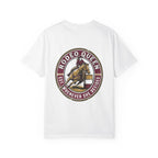 A barrel racer mid-turn, dust flying, confidence radiating. "RODEO QUEEN" isn't a title you're given. It's one you earn. Front-and-back rodeo emblem on a garment-dyed Comfort Colors 1717 that feels like you've been wearing it for years. Heavyweight ring-spun cotton with that broken-in vintage warmth. For the fierce, confident riders who don't need permission to be the best in the arena.