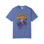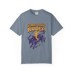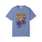A silhouette rider leaping across a star-filled cosmic bull. Part rodeo grit, part galaxy vibes, all OFFHOURS. This garment-dyed Comfort Colors 1717 tee has that broken-in warmth from the jump. Heavyweight cotton that drapes easy, colors that look vintage from day one. For the cowboys who look up at the sky and wonder what's out there.